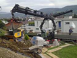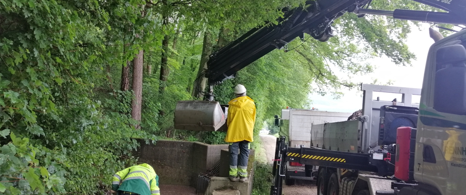 Mit den LKW-Kränen können wir eine Tonne bis max. 16 m heben.