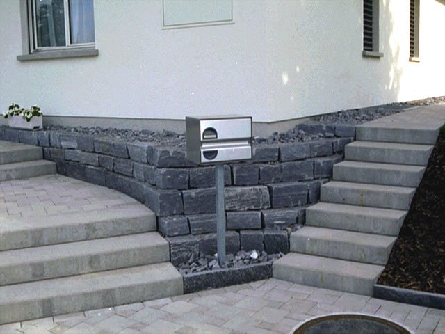 Natursteinmauern, Natursteingärten, Aussenanlagen, Verbundsteinplätze, Treppen aus Naturstein und Betonelemente, Umbau von bestehenden Anlagen (aus alt mach neu), Einfriedungen.